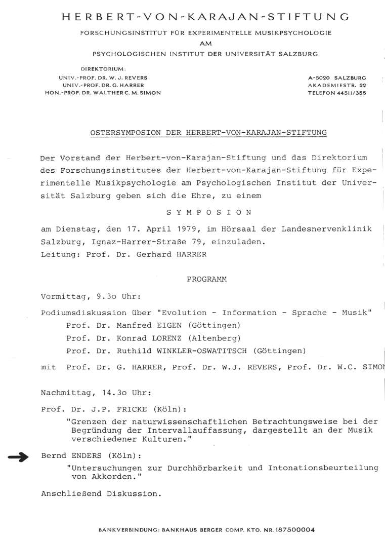 Vorträge seit 1979 (= 1. Vortrag beim Ostersymposium